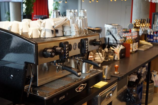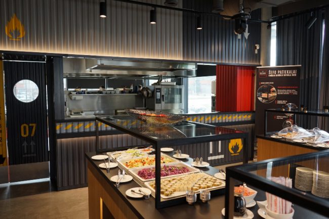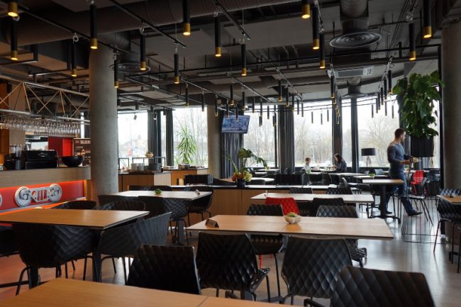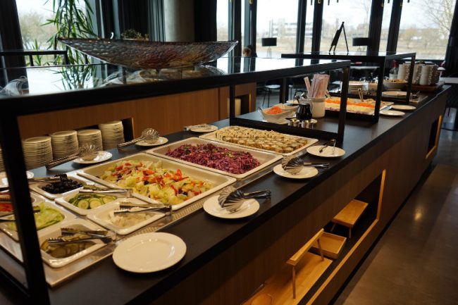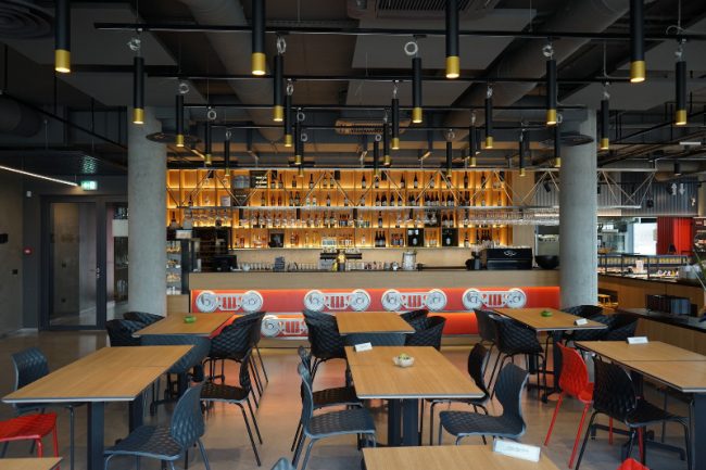 BUFFET counters and contract furniture for a canteen in office building. Made of: